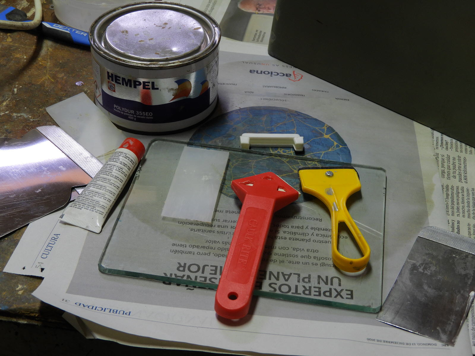 La limpieza de las piezas de metacrilato transparentes ha sido fácil y hay que destacar la calidad del material, limpio y sin rayas, el único problema es que en la ventana del contador de dígitos las orejas donde se insertan los tornillos están rotas y he tenido que reforzarlas con fibra de vidrio y superglue, afortunadamente ese apaño no se ve al exterior.